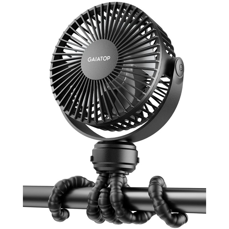 Gaiatop Mini Portable Stroller Fan, Battery Operated Small Clip on Fan, Detachable 3 Speed Rechargeable 360° Rotate Flexible Tripod Cooling Fan for Car Seat Crib Treadmill Travel Black