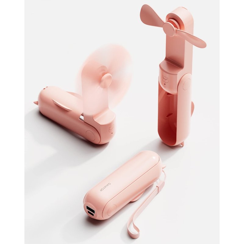 Gaiatop Portable Handheld Fan, Foldable Small Fan, Mini Hand Held Fan with USB Rechargeable 2000mAh Battery, Eyelash Fan for Girls, Travel For Women, Outdoor, Pink