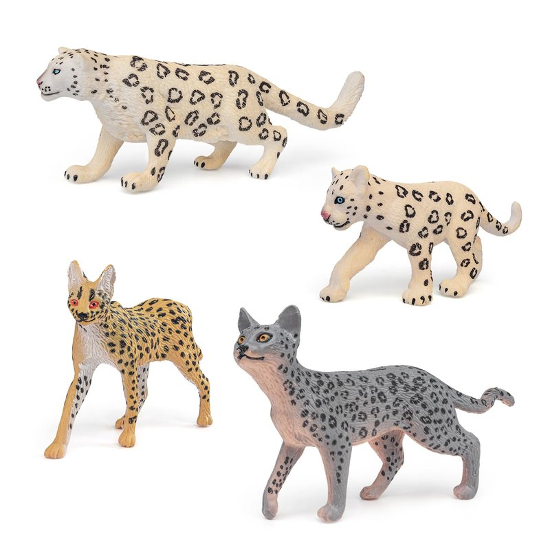 GAICOM Wildlife Model Set 4PCS Snow Leopard,Serval,Leopard Cat Party Favors Toys for Boys Girls Kids