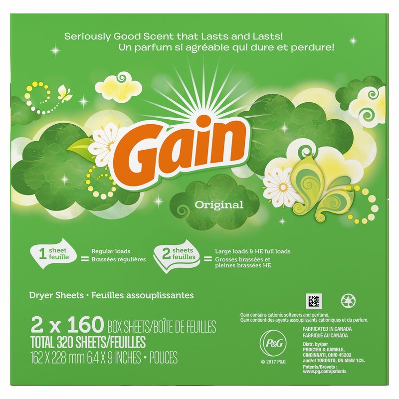Gain Gain Dryer Sheets (2 x 160 Sheets Net 320 SheetsCount), 320Count