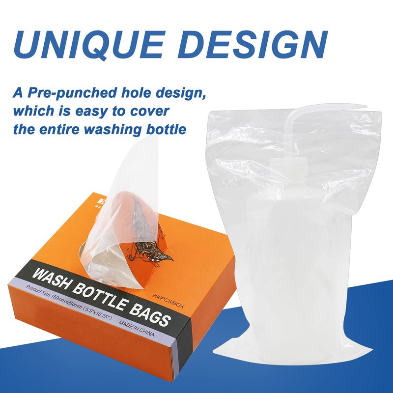 Gakonp 250pcs Wash Bottle Covers - Disposable Wash Bottle Bags Plastic Bottle Bags Squeeze Bottle Bags for Wash Bottle Sleeves