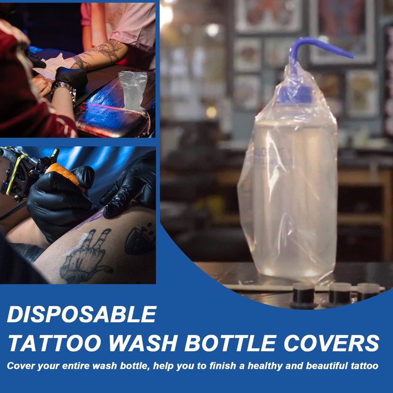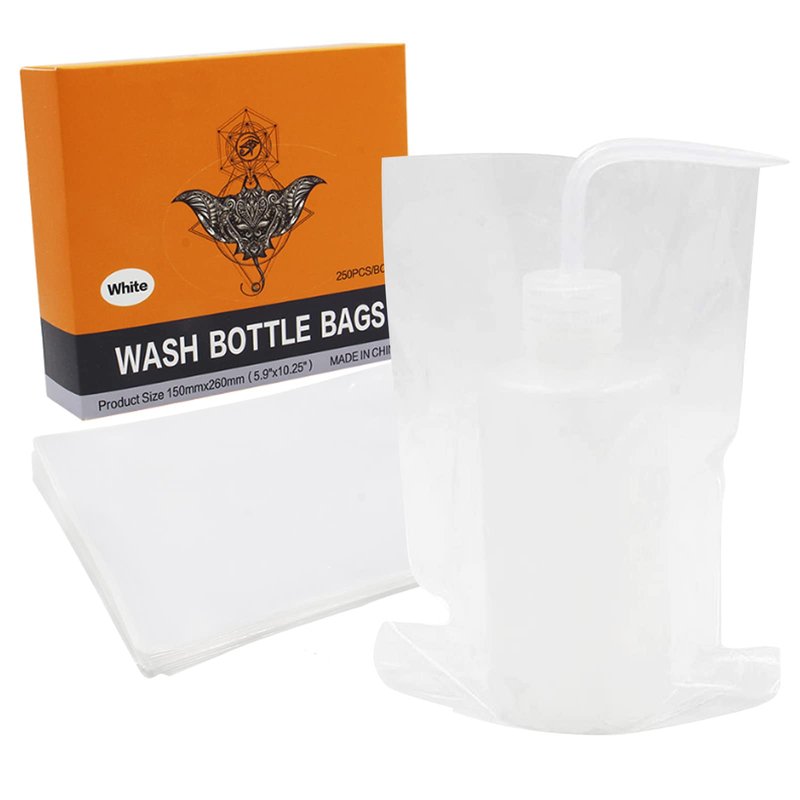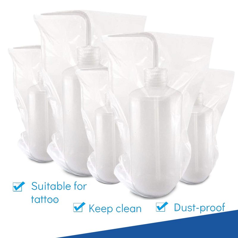 - 🌈COVER MORE RANGE - 250 Tattoo wash bottle bags per box. The tattoo wash bottle bags size is 150*260mm (5.9*10.25in), not thin and long enough to cover the whole bottle, each piece is for one-time use only