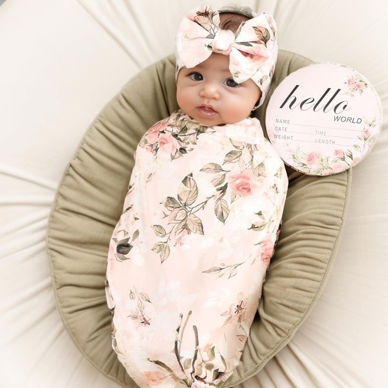 Newborn swaddle blanket headband set flower print baby receiving blankets
