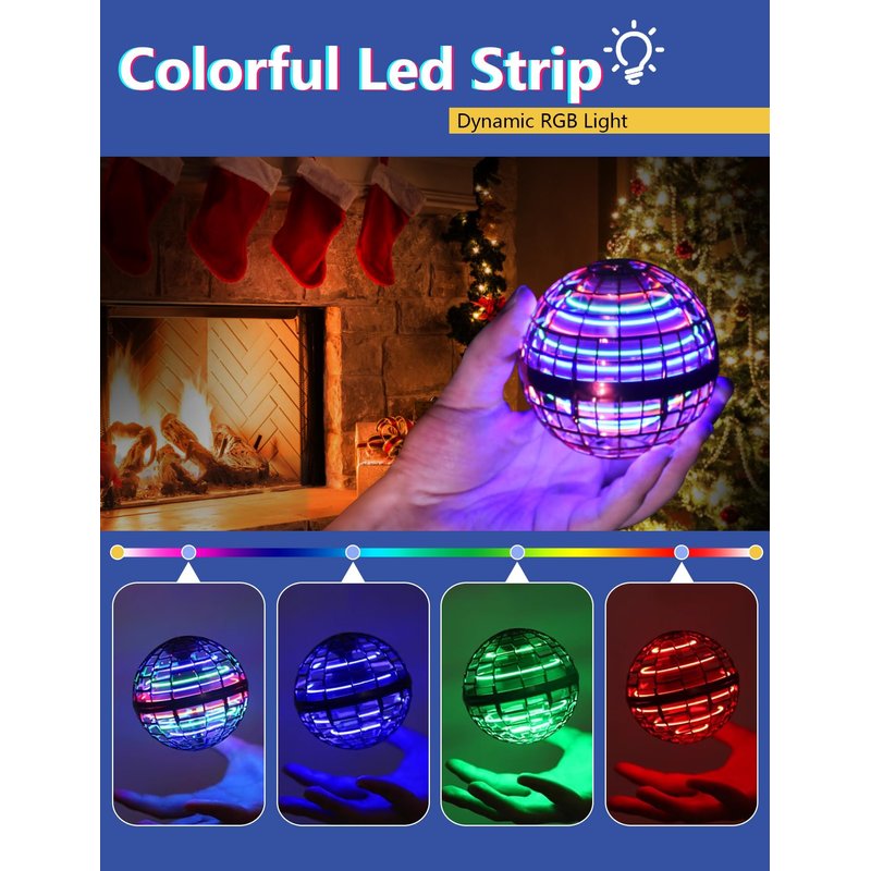 - 【High-Tech Flying Orb Ball Set of 2】Experience the fun with our set of two hand-controlled drone balls, each featuring a gyroscope and smart AI chip. It glows in vibrant colors, offering varied flight paths, skills, including boomerang effects