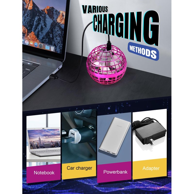 - 【Smart Indicator and Quick Charge】The handy indicator light on each orb pro flying spinner shows when charging is in progress and turns off when fully charged. A quick 20-minute charge gives up to 10 minutes of flight time, ensuring uninterrupted fun