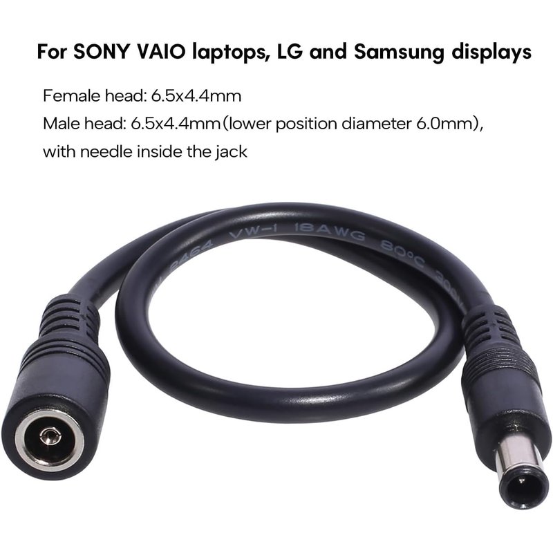Galepromot Black DC6.5x4.4mm Extended Line Power Cable 6.5x4.4mm for Notebook Short Extension Cord 18AWG 120W DC6044 Power Supply Cord Power Cords Cables (30cm)