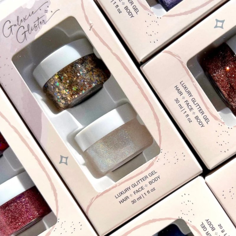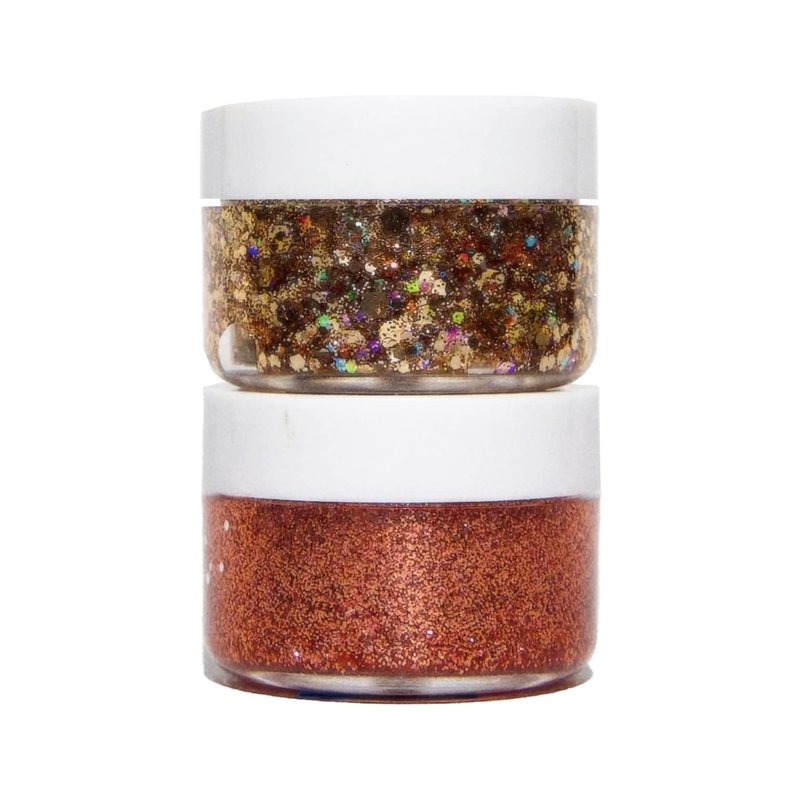 Galexie Glister Tupelo Honey duo is a versatile and eye-catching glitter gel that can add some shimmer and shine to any look. The duo features two shades of glitter gel, gold and rose gold. This glitter gel is made with high-quality cosmetic-grade glitter, making safe, gentle, and easy to apply. It's perfect for festivals, parties, or even everyday wear. The mess-free formula glides on and washes away easily with soap, water, and a cloth.