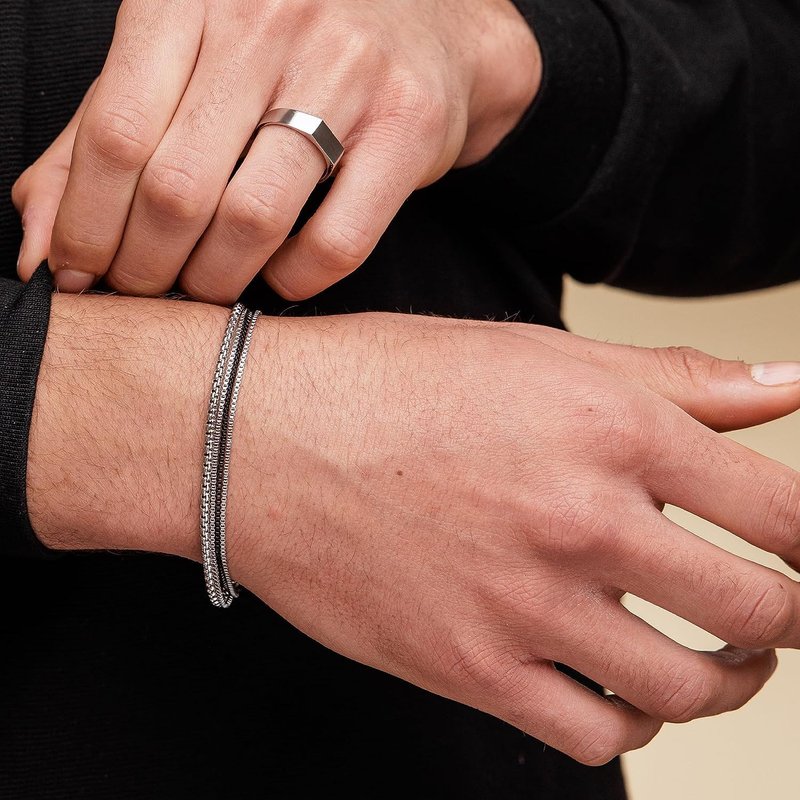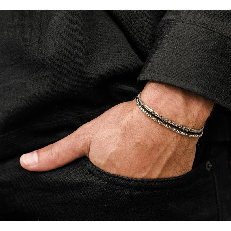 - BOX CHAIN DESIGN: Watch the video to see why the bracelet is intentionally designed longer. This allows for an additional wrap around the wrist, creating the bracelet's intended stylish appearance. This way you will elevate your look with this timeless Jewellery for men. Perfect for daily wear or special occasions, it seamlessly blends with casual, sporty or everyday styles. A versatile accessory that truly captures and expresses your unique personality.