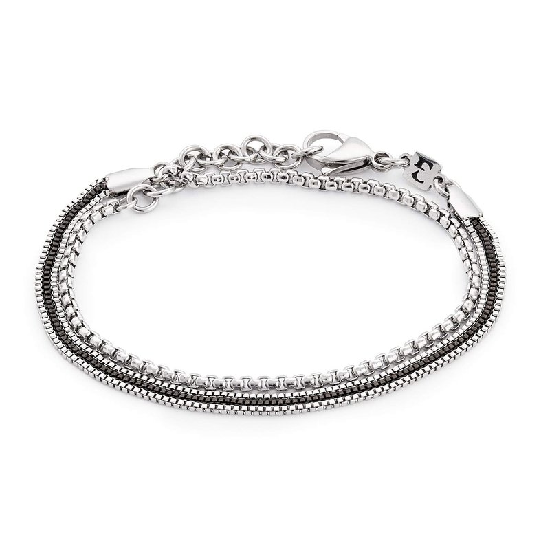 Galis Bracelet Set - Stainless Steel Bracelet for Men, Non Tarnish Silver Plated Box Chain Layered Bracelet, Stylish Men's Jewelry as Gifts for Him, Black & Silver Bracelet with Lobster Claw Clasp 7"
