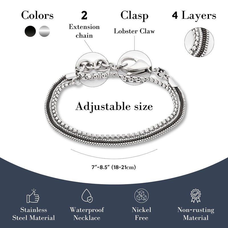 - PREMIUM QUALITY MATERIALS: Crafted from superior stainless steel, this non tarnish Bracelet offers both elegance and durability. Whether it's the shimmer of a black with silver and black with gold chains it won't discolour your skin.