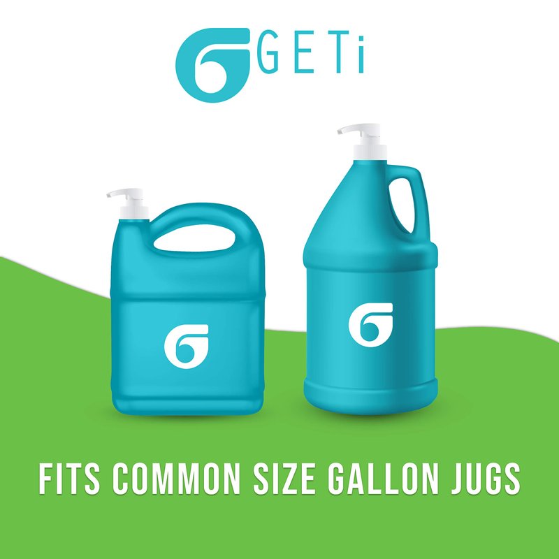 - Geti pumps have an 11-inch tube (cut to the size bottle you have, if needed). Packed in U.S.A and ready to use. Also features a non-slip top for an ergonomic feel and press. Our gallon pumps also have ribbed ribbed-edges for easy grip and twist, and lock