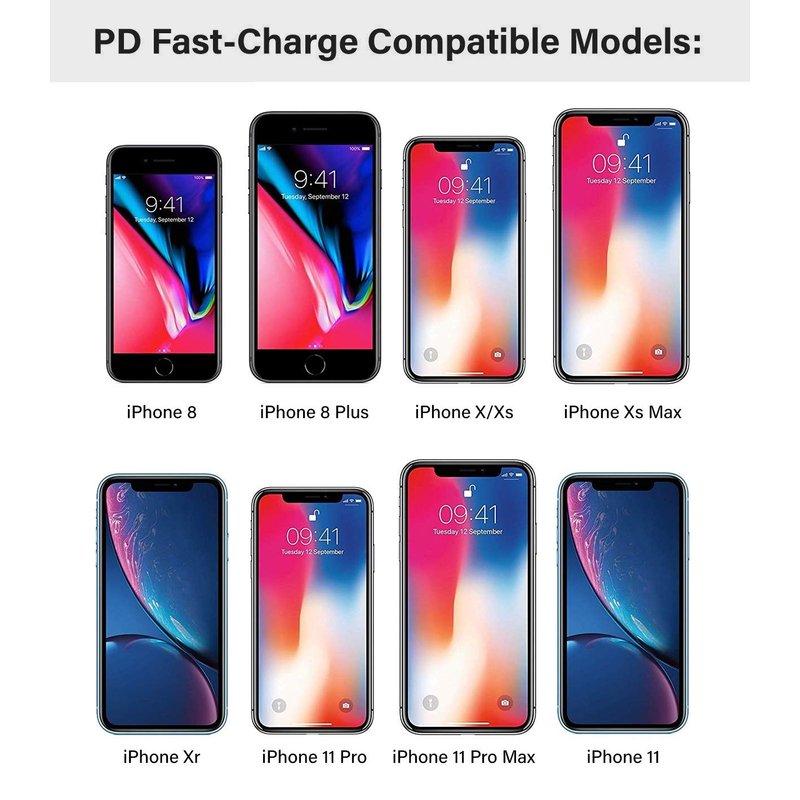 - The PD technology is compatible with: iPhone 8, 8 Plus, iPhone X, XR, iPhone XS Max, iPhone 11, iPhone 12, iPhone 13/Pro Max/Mini