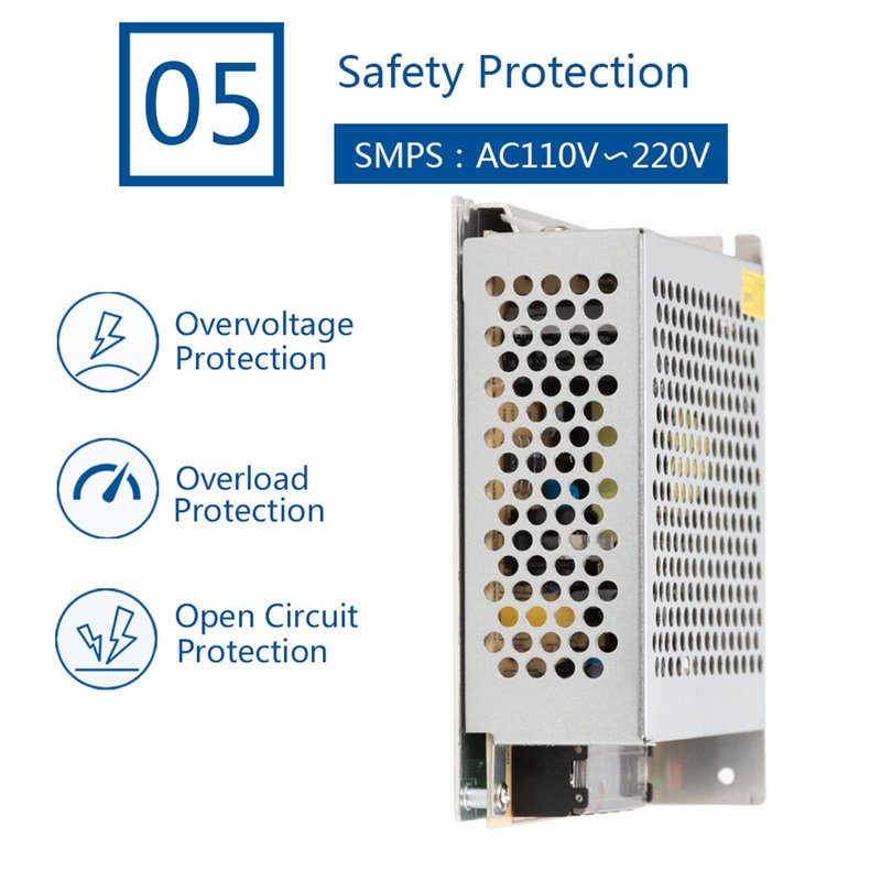 - 【Safety Performance】This Switching Power Supply(SMPS) operates from AC110V~220V and converts to DC 12V. Built in fuse providing a voltage regulated single output which can be adjusted with an on board potentiometer. With short circuit, overload, over voltage, protection function to protect your device.