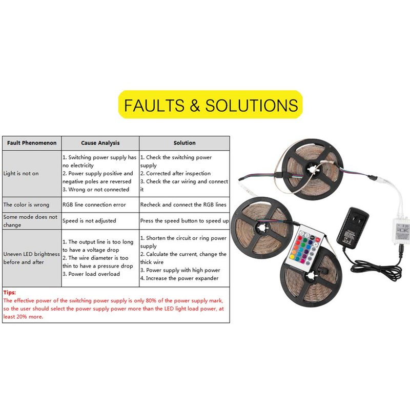 【PACKAGE CONTAINS】 - 1 x 24/44 KEY IR Remote Controller, 1 x Rectifier Control Box, 1 x 12V 2A power supply Connector, 1 x 4 pinpin male to male connector (can be pulled out if you don't need it).