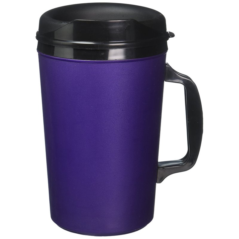 A good coffee mug is like a comfortable pair of Jeans or your favorite boots - it just feels "right". For years the 20 oz mug was available at most Gas Stations and Convenience Stores. A few years ago they suddenly disappeared from the market and haven't been seen since. Well, we found the mold and arranged for a special production run of mugs. The ThermoServ mugs are great. They are double wall insulated and unlike other mugs on the market, they are foam filled so they are far superior at keeping drinks hot or cold. These rugged mugs are both dishwasher and microwave safe. The lid snaps on tight and doesn't leak out the sides like most of the Chinese imports! This listing is for one purple mug with a black top. There is no printing or graphics on this mug.