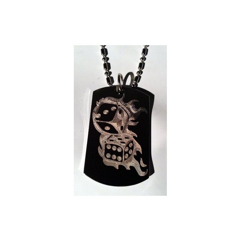 Gambling Craps Cards Lucky Flaming Dice Logo Symbols - Military Dog Tag Luggage Tag Key Chain Metal Chain Necklace