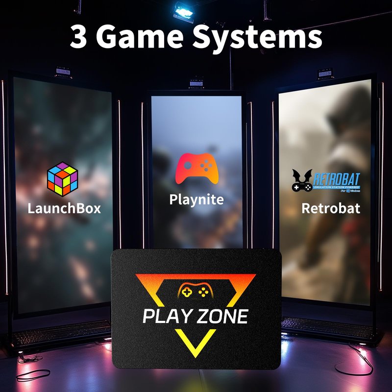 - Game console hdd with 3 game system, Retrobat mainly runs classic retro games, Playnite mainly runs AAA games, and Launchbox mainly runs 3D games.