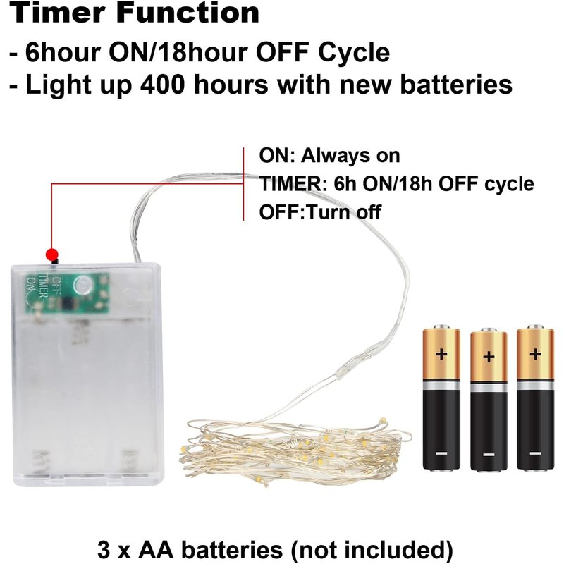 These string lights with extra thin string with ultra-bright high-quality 50pcs micro LED starry lights, can last 50,000 hours. They are intensely bright with a steady 360-degree viewing angle they illuminate in every direction. These fairy string lights made of high-quality double wires copper, flexible, and ultra-thin but sturdily built. It can be easily bend, twist, and mold to any shape. Perfect for DIY decorations.