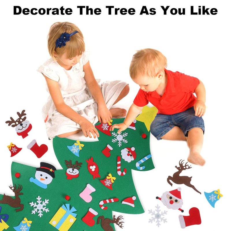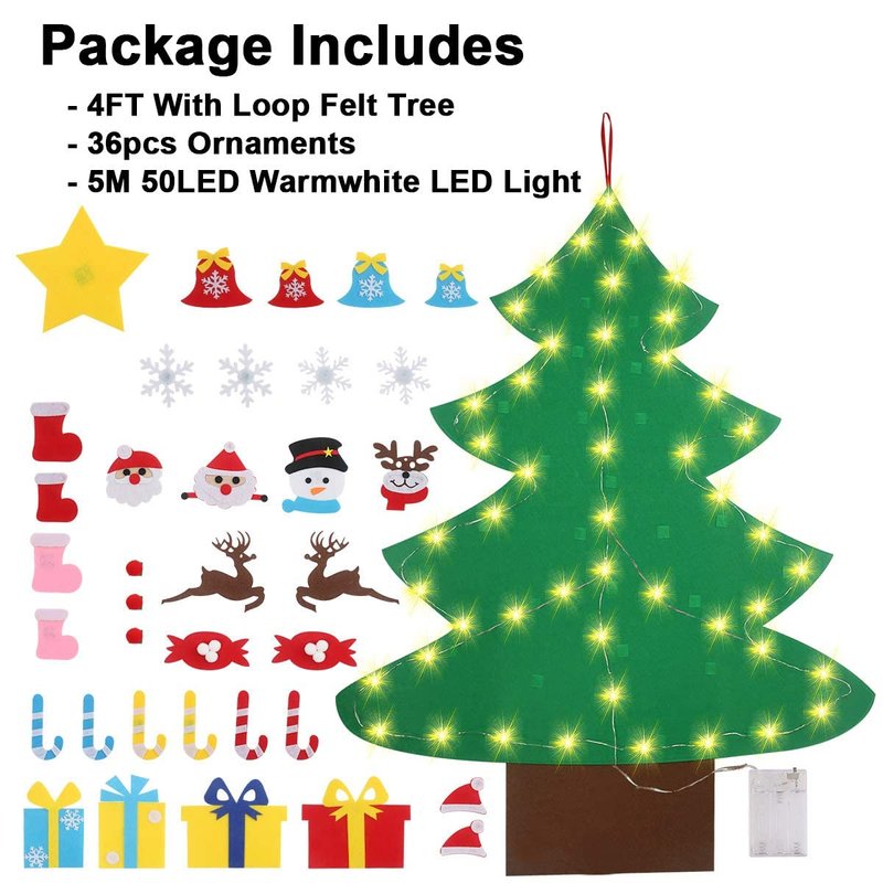 4ft DIY felt Christmas tree with 36pcs stick on Xmas ornaments. Suitable for kids toddlers wall, door, children's bedroom, playroom, kindergarten, nursery, school, etc. Great entertaining felt Xmas tree for kids, toddlers to decorate.