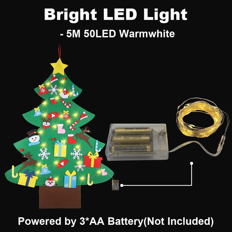 GameXcel 4FT DIY Felt Christmas Tree Set with 36pcs Ornaments 5M 50LED Warm White LED String Lights - Wall Hanging Felt Xmas Tree for Kids Toddlers Christmas New Year Gift Decorations Party Supplier