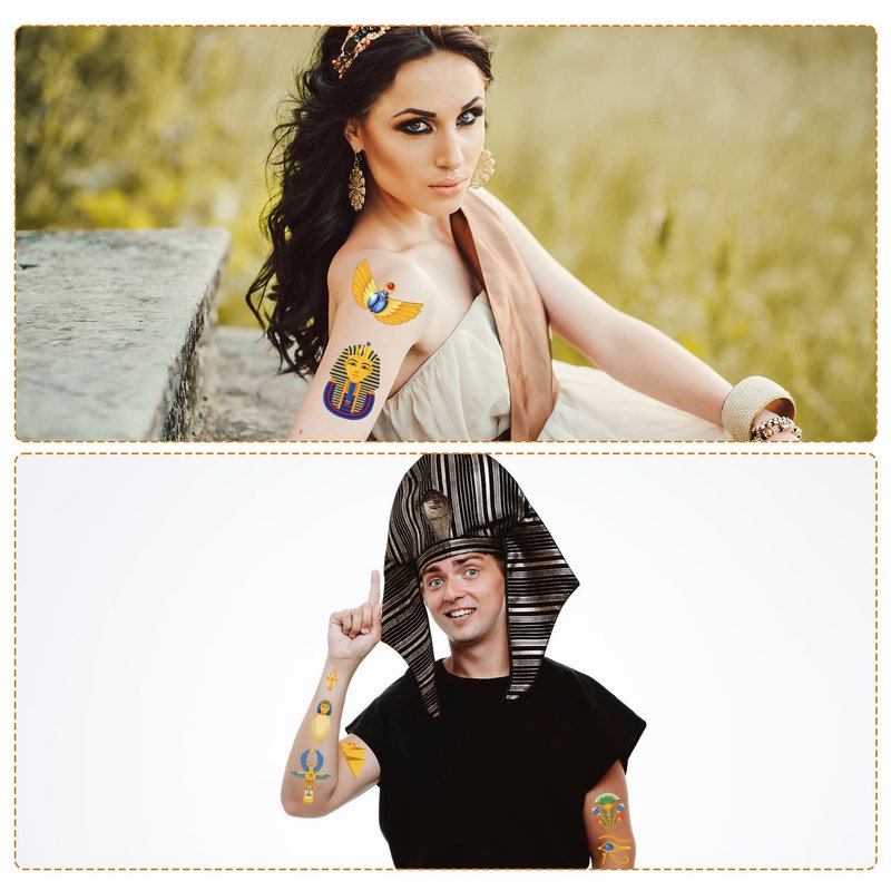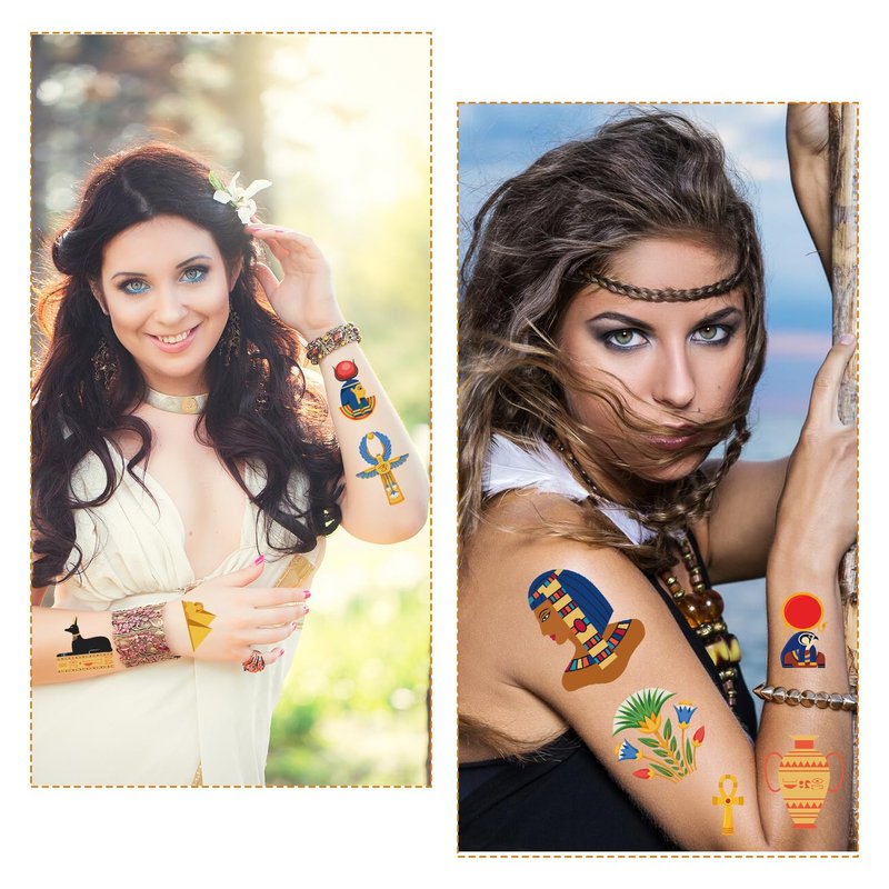 - Ancient Egypt Party Favors: There are 8 tattoo stickers in total, with more than 30 designs. You can get 240+ ancient Egypt-themed tattoos, enough for you and your friends to use together.