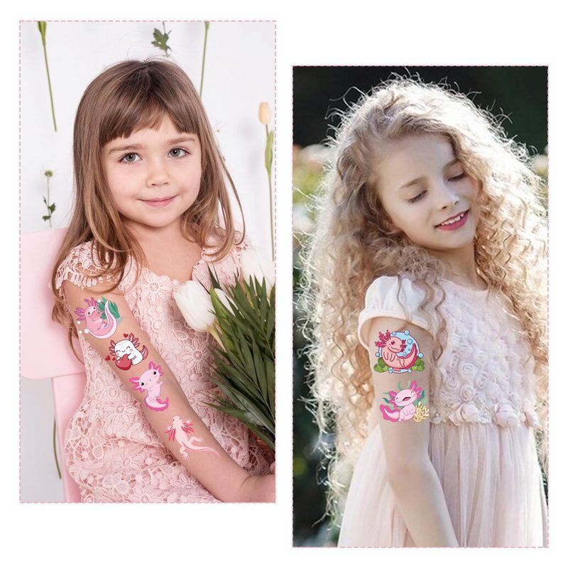 - Axolotl Temporary Tattoos: You will receive 8 pink axolotl themed tattoo stickers, more than 25 patterns of cute axolotl style temporary tattoos, a total of more than 200 small tattoo stickers, enough for you to share with your friends.
