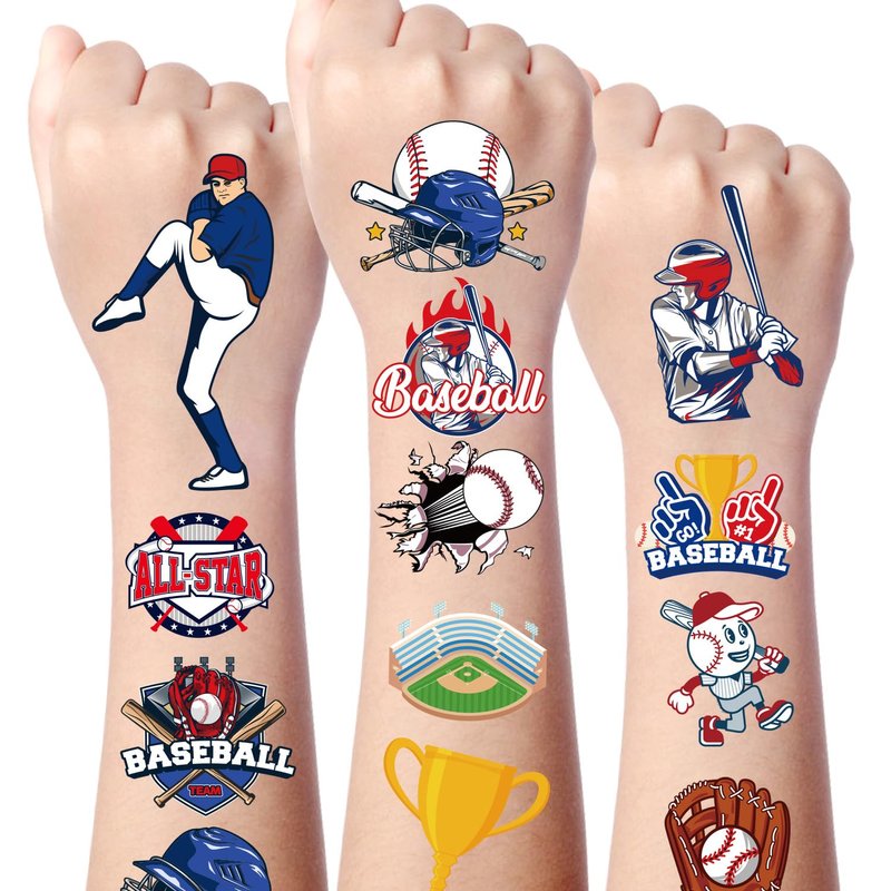 - Baseball Tattoo: Temporary tattoo stickers are baseball themed and everyone who loves baseball will love this tattoo sticker. Cool tattoo stickers add fun to your baseball game and are a surprise gift for yourself, friends, kids and students!