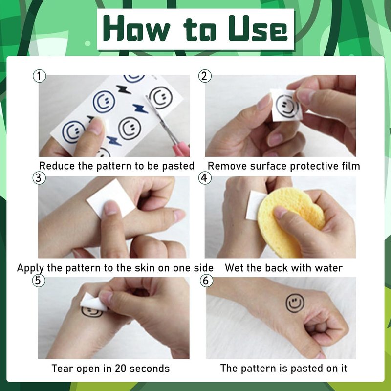 - How to Use: Our tattoo stickers come with application steps so you can get multiple tattoos easily. Perfect for boys' birthday parties, costume parties, jungle-themed baby showers, boys' parties and more.