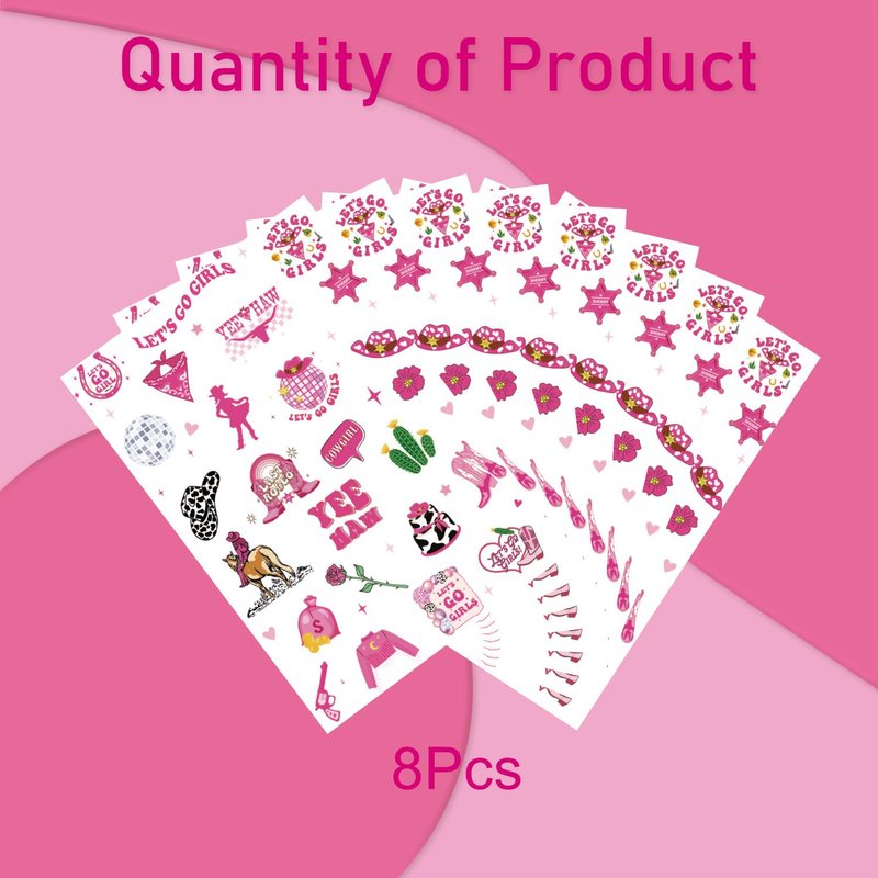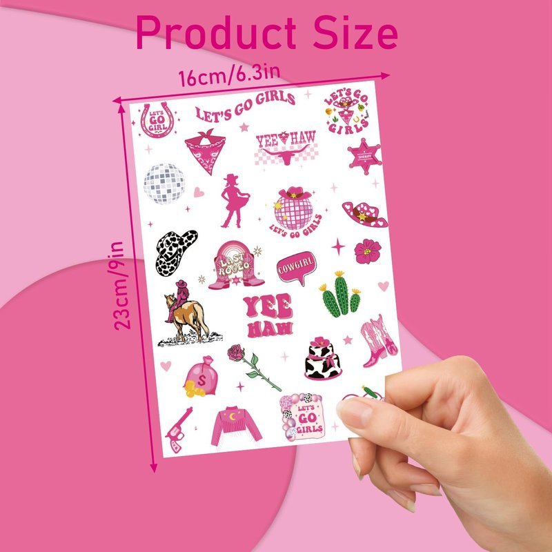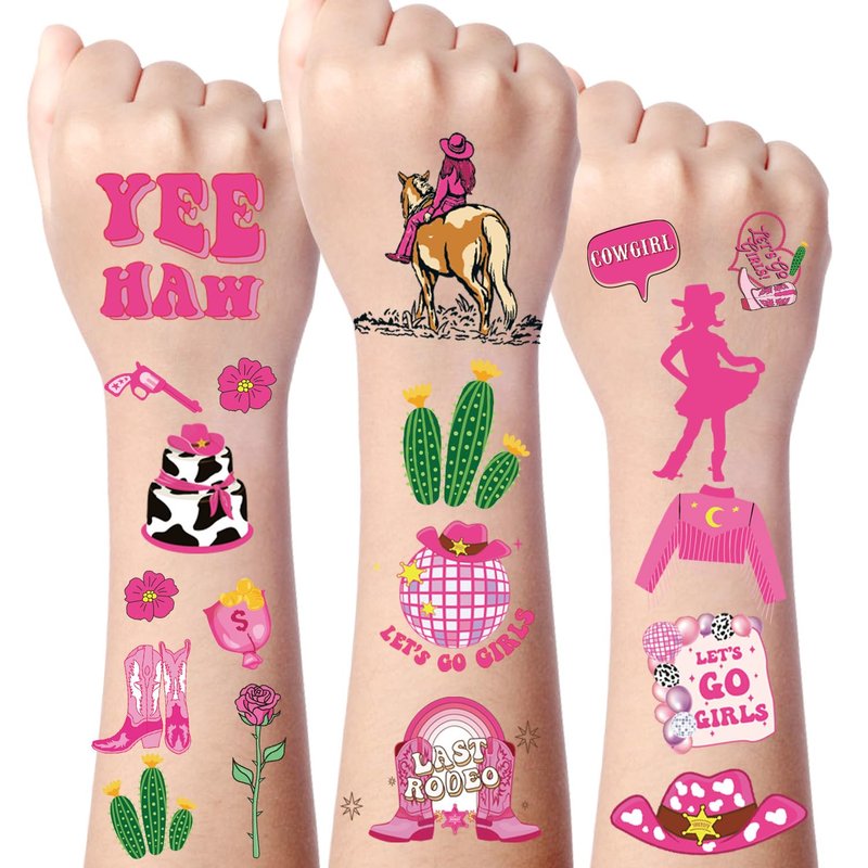 - Cowgirl Temporary Tattoo: The tattoo stickers are based on the theme of pink Cowgirl. It is a perfect match for girls to use temporary tattoos at parties. Temporary tattoos can easily provide you with beautiful body makeup!