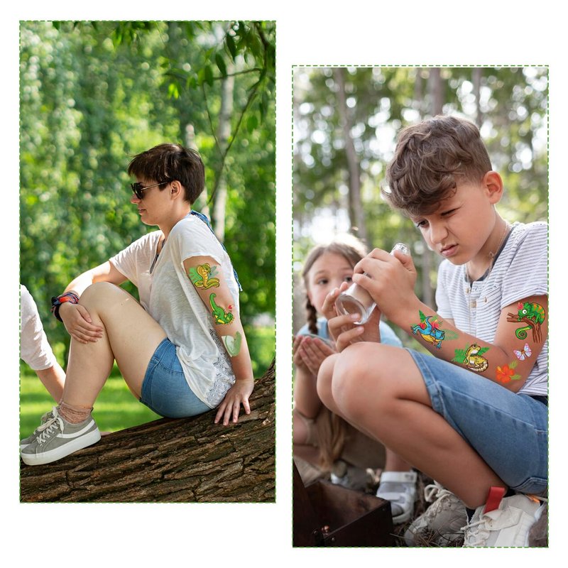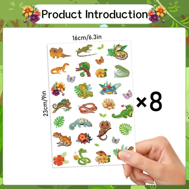 - Usage Scenarios: Reptile tattoos are suitable for jungle baby showers, animal parties, jungle-themed birthday parties, reptile-themed parties, classroom rewards, etc. Knowledge of nature is the best gift for children and students.