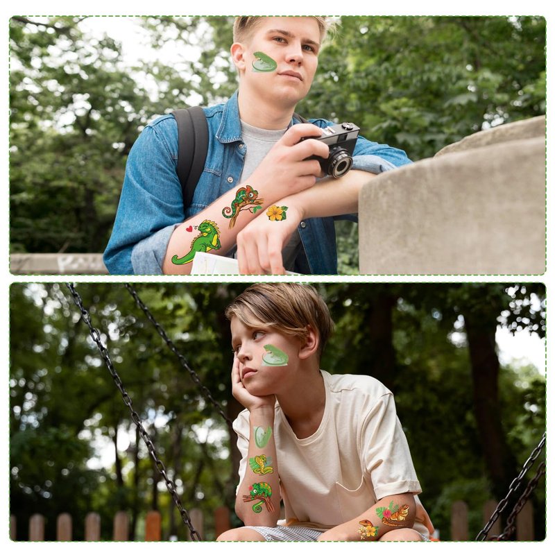 - Reptile Temporary Tattoos: You will receive 8 Reptile themed tattoo stickers, each with more than 20 different patterns, and 240+ small tattoo stickers are enough for you and your friends to use together.
