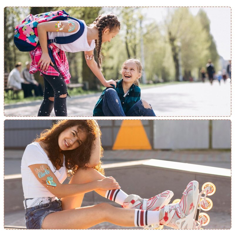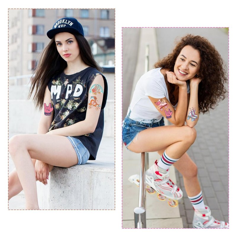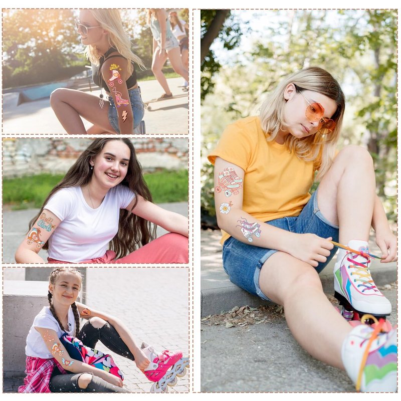- Roller Skate Temporary Tattoos: You will receive 8 roller skate themed tattoo stickers, more than 25 patterns of groovy style temporary tattoos, a total of more than 200 small tattoo stickers, enough for you to share with your friends.