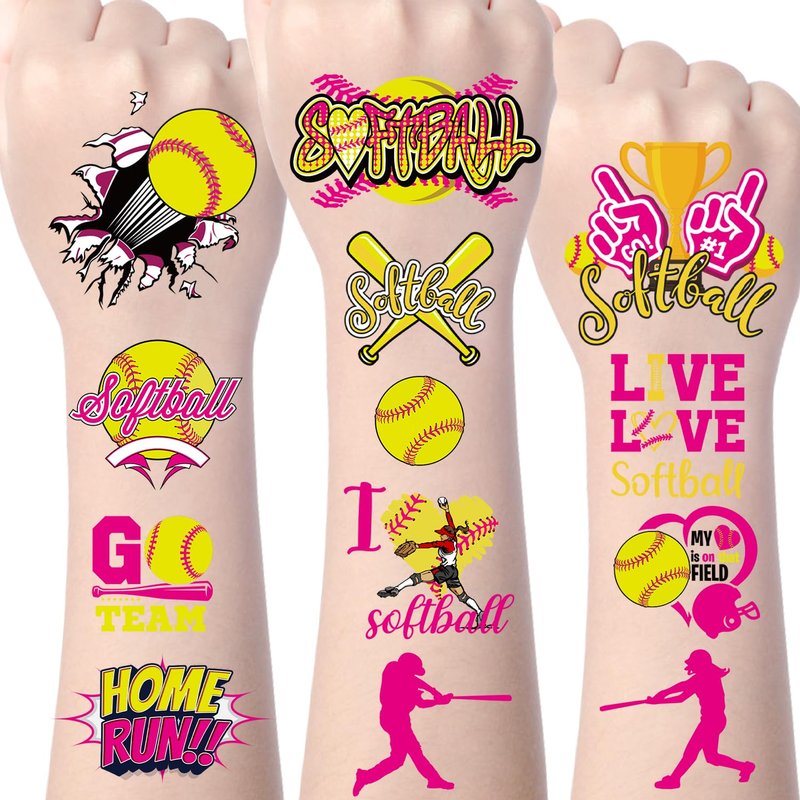 - Softball Temporary Tattoos: You will receive 8 Softball themed tattoo stickers, each with more than 20 different patterns, and 240+ small tattoo stickers are enough for you and your friends to use together.