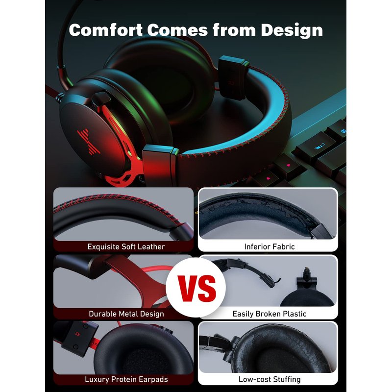 - ✅【Crystal Clear Chat】The closed ear cup design of GH100 gamer headset blocks out background distractions, and the Noise canceling mic picks up your voice and transmits clear communication to teammates.