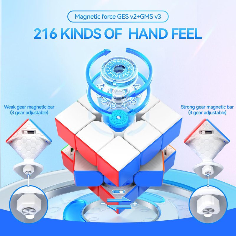 - 216 Kinds of Hand Feel: GAN Magnetic force GES v2 + GMS v3, from hard to smooth, from stretch to tight, the numerical system provides you with ultra-precise adjustment! And provide strong magnetic and weak magnetic two kinds of magnetic bars, customize your exclusive hand feeling