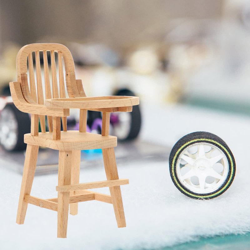 GANAZONO Miniature Highchairs Dollhouse Wooden High Chair Mini Doll Furniture 1:12 Scale Desktop Chair Doll House Accessories