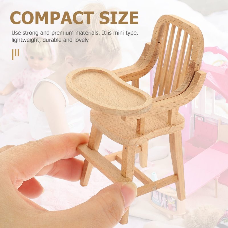 This is a miniature highchair decor, which is material, durable and decorative, exquisite and compact size. Mini and lightweight design, reasonable size, easy and convenient to place and decorate. Meanwhile increase the unique decor for your mini house.