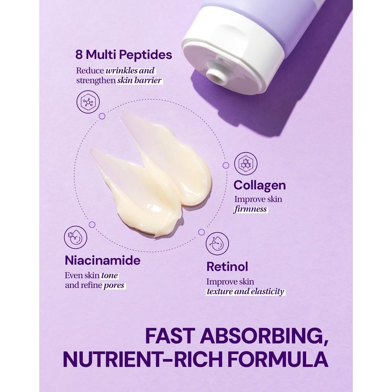- [ENRICHED WITH HIGH-POTENCY FORMULA] : Formulated with 8 multi peptides, collagen, niacinamide, and retinol, this cream helps to transform skin into firm, plump, radiant skin.