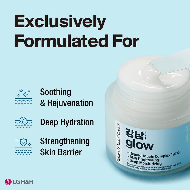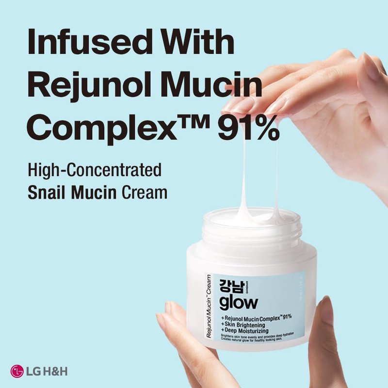 - 🌱With GANGNAM GLOW, Without Any Concerns : GANGNAM GLOW Rejunol Mucin Cream is formulated with skin-friendly ingredients that soothe irritated skin. Hypoallergenic Tested, Formulated without Silicone Oil, Tar Color, Synthetic Fragrance, Talc, Mineral Oil, Paraffin Wax, and Petrolatum