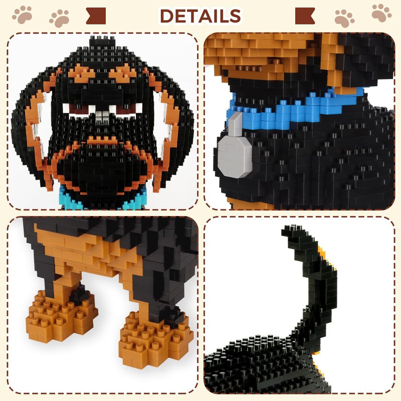 - 🦴Mini bricks set-2100 Pieces Dachshund Dog Micro Building Block Set,challenging,the model offers hours of entertainment and challenge for adults and teens aged 14 and up,Please noted that this is the MINI animals building blocks,which means some of the blocks is less than 10mm,If you make a mistake during the assembly process,you can use small tweezer at home to pull it out