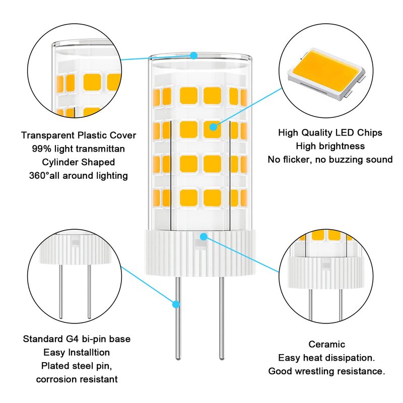 - 【Wide Application】Standard 2pin G4 base, easy to install. Often used for landscape lighting, chandeliers, ceiling light, desk/floor lamps, wall mounts sconce, RV, boats, yachts, etc.