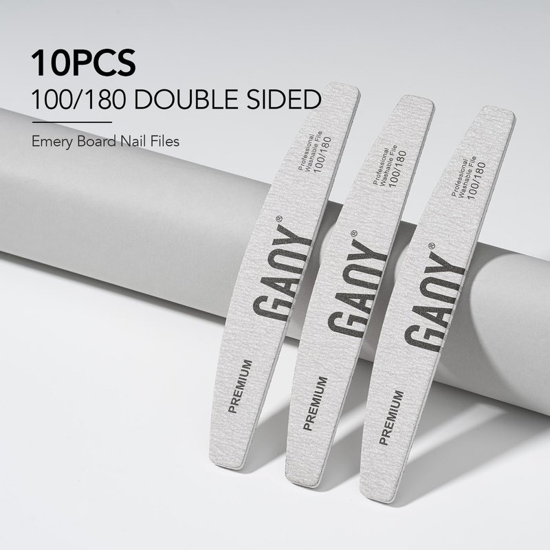 GAOY 10Pcs Nail File, Professional Half-Moon Shaped 100/180 Grit Double Sides Washable Emery Boards Manicure Tools for Acrylic and Gel Nails