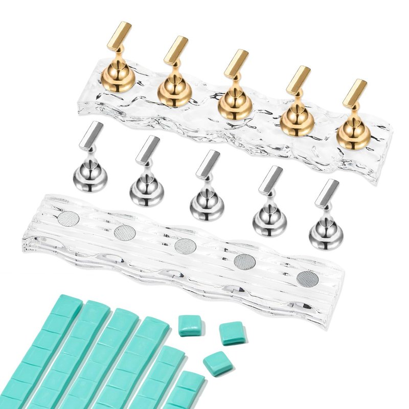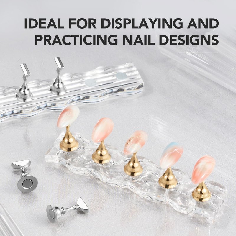 - Package includes: 2 sets of acrylic nail holders with 5 chess-shaped nail tips. Also comes with 96 pieces of reusable adhesive putty. Ideal for displaying and practicing nail designs.