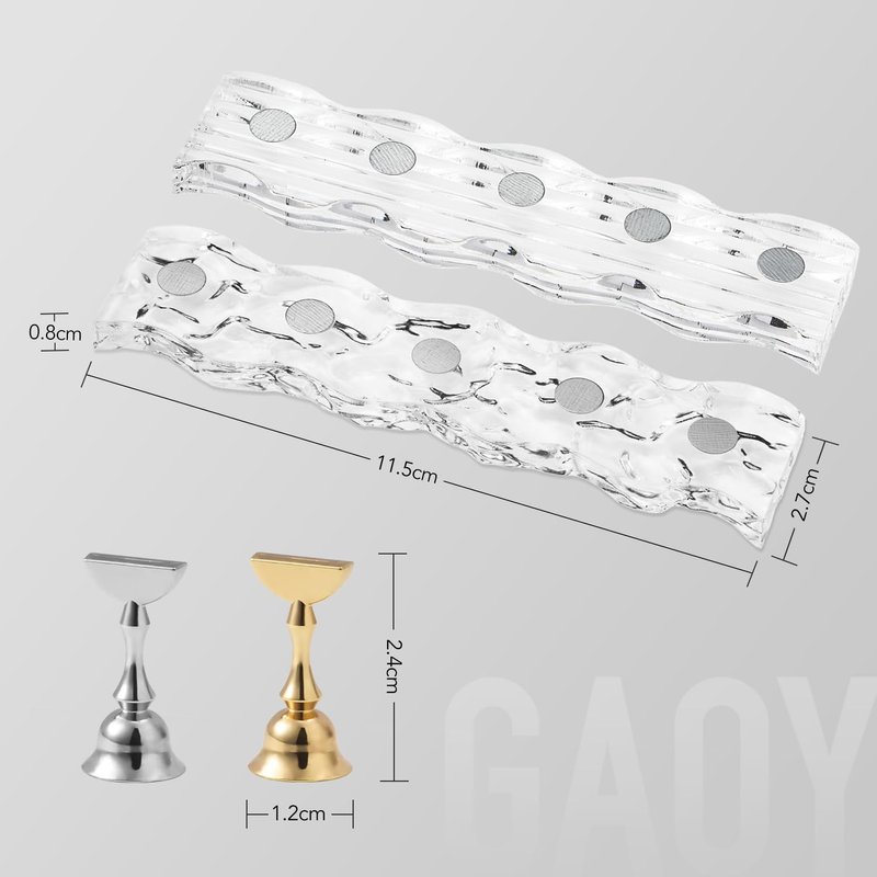 GAOY 2Pcs Magnetic Nail Stand, Acrylic Nail Art Practice Press on Nails Display Stand Holder with 96Pcs Reusable Adhesive Putty for Home DIY & Salon Use Manicure Tools, Golden & Silver