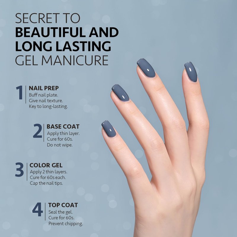 - 4 Weeks Long-Lasting: Buff your nail bed before base coat to give your nail texture. Apply top coat after color gel for glossy finish.