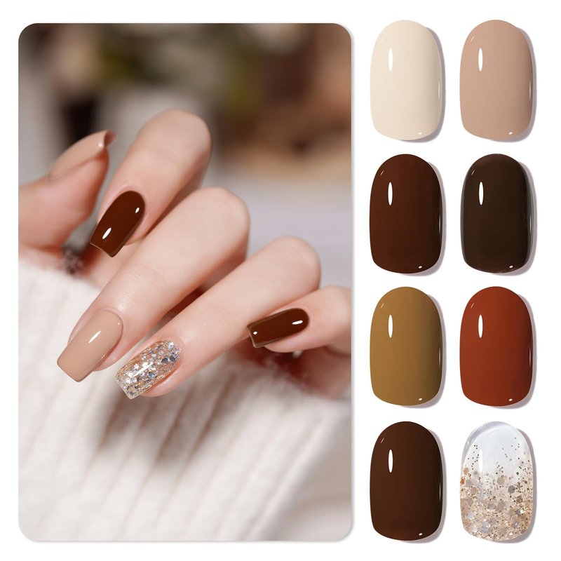 GAOY Brown Gel Nail Polish Set, 8 Colors Gold Cream Beige Brown Soak Off Gel Polish Kit for Salon and Nail Art DIY at Home