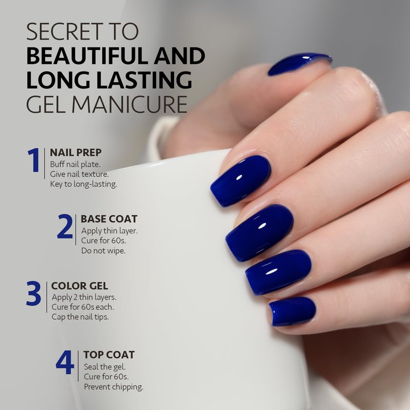 - 4 Weeks Long-Lasting: Buff your nail bed before base coat to give your nail texture. Apply top coat after color gel for glossy finish.