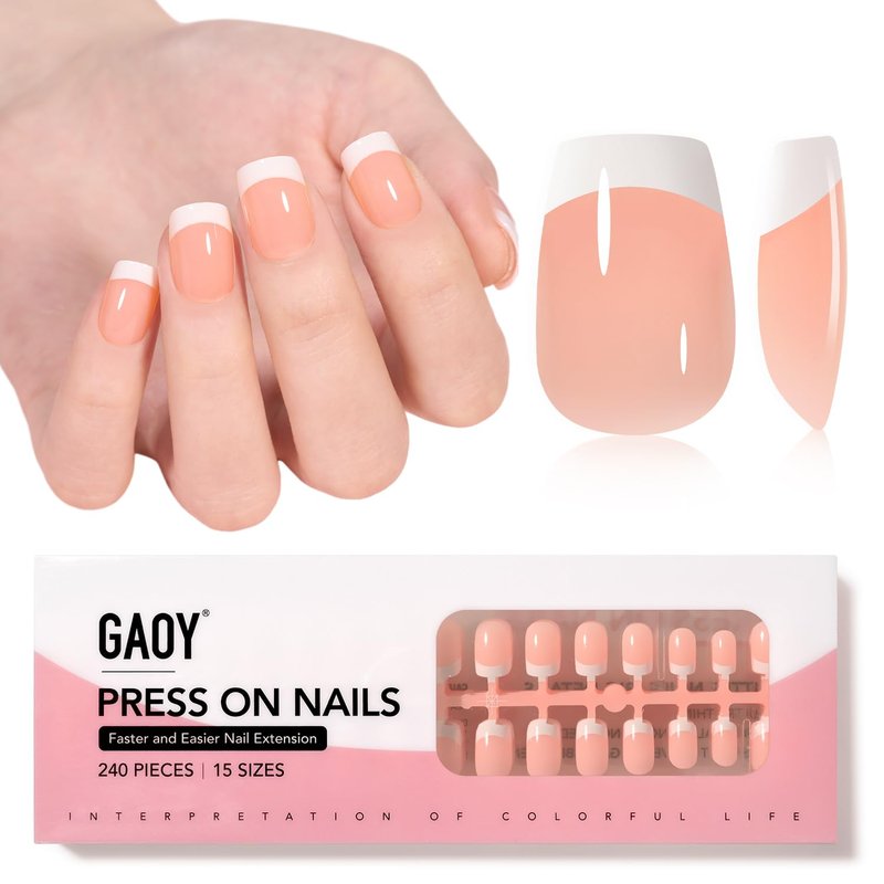 - 3 IN 1 FRENCH NAIL TIPS: The fake nails come ready to wear, without base coat and no drying time.