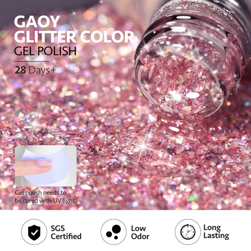 - SHINING GLITTER: Extremely sparkly like diamonds after 2 layers of glitter gel. A must-have glitter gel for party-goers!