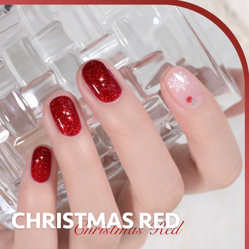 GAOY Glitter Gel Nail Polish, 16ml Sparkly Red Jelly Gel Polish, UV Light Cure for Nail Art DIY at Home, 1147 Christmas Red